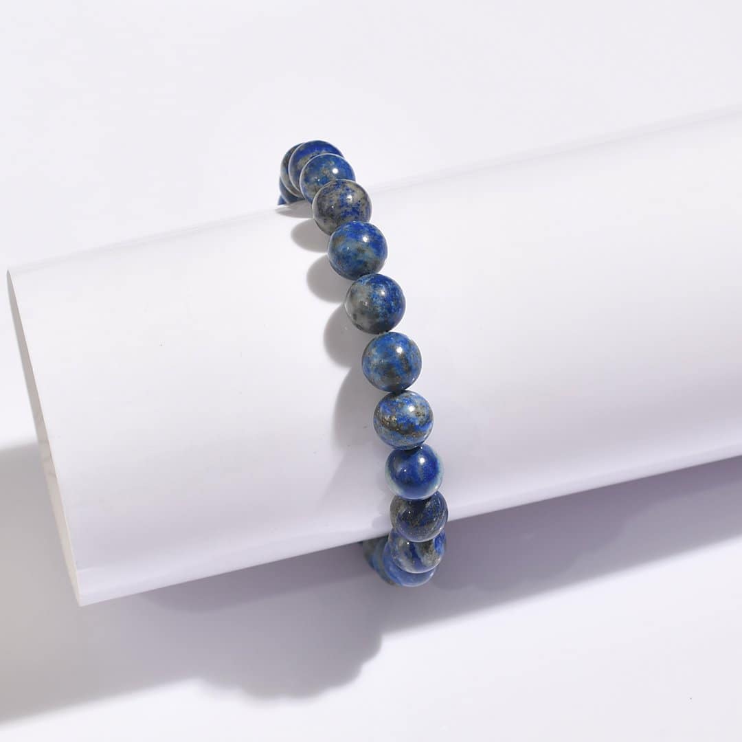 Features: Bead Size: Available in 6mm and 8mm (Choose Bead Size) Bracelet length: Small, Medium and Large (Choose Your Wrist Size) Gemstones: Lapis Lazuli Benefits: Lapis Lazuli, a deep blue semi-precious stone, has been valued for centuries for its Spiritual and Healing Properties.